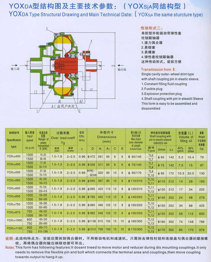 YOXDA型結構圖及主要技術參數(shù):(YOXSjA同結構型)系列